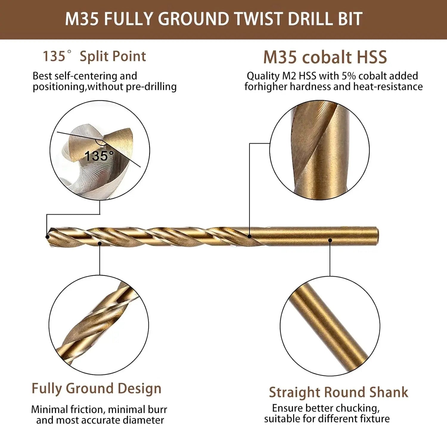 10pcs 3/16 Inch(4.8mm) Cobalt Drill Bits, M35- HSS High Speed Steel for Drill/Driver Stainless Steel Heavy Duty Twist Steel Drill Bits