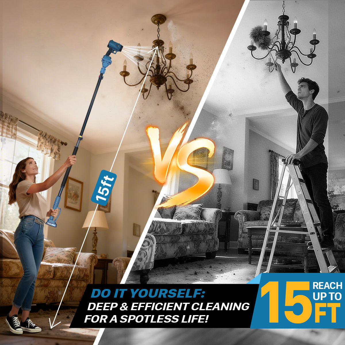 【Telescoping Design】This small leaf blower extends from 48 inches to 98.4 inches, allowing you to clean high areas like roofs, gutters, and ceilings without the risk of ladder falls. It also helps reduce back strain by minimizing bending during everyday leaf cleanup. For compact storage, it can be easily placed in a shed, car trunk, or other tight spaces.