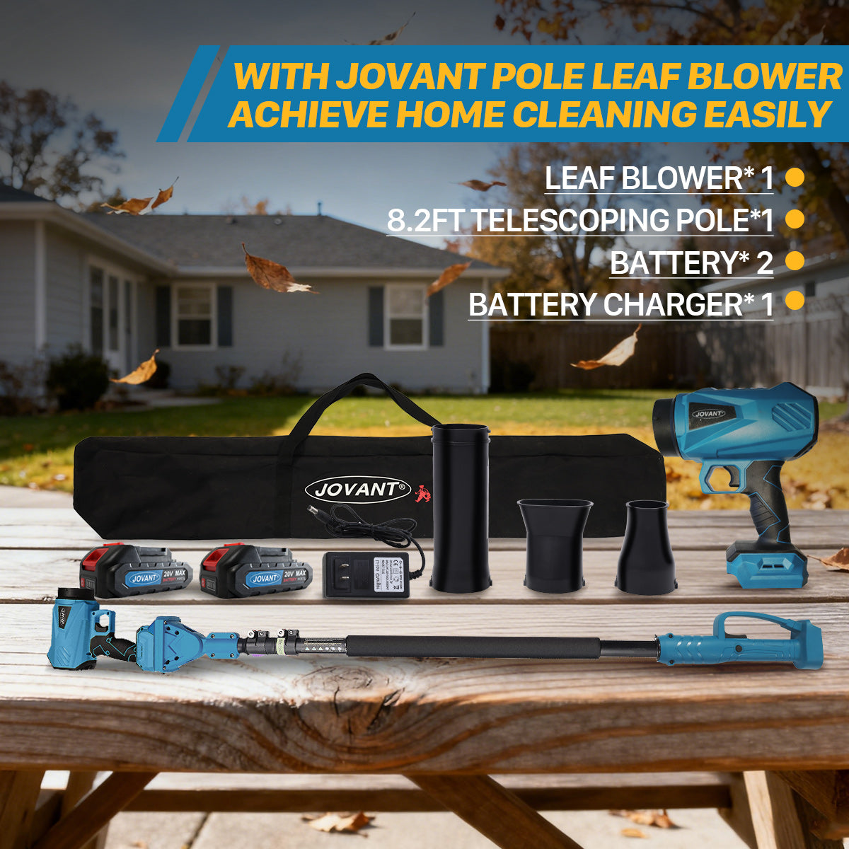 JOVANT 2-in-1 Cordless Pole Leaf Blower with 2 Batteries & Charger, Lightweight Electric Leaf Blower Cordless for Patio, Lawn, Roof, Gutter, and Ceiling Cleaning