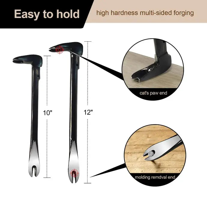 ➤【Compact and Portable】: The 12” pry bar and 10” mini crowbar are compact and lightweight, making them easy to carry and use in tight spaces. Their portability ensures you can tackle nail removal tasks anywhere, anytime, with ease