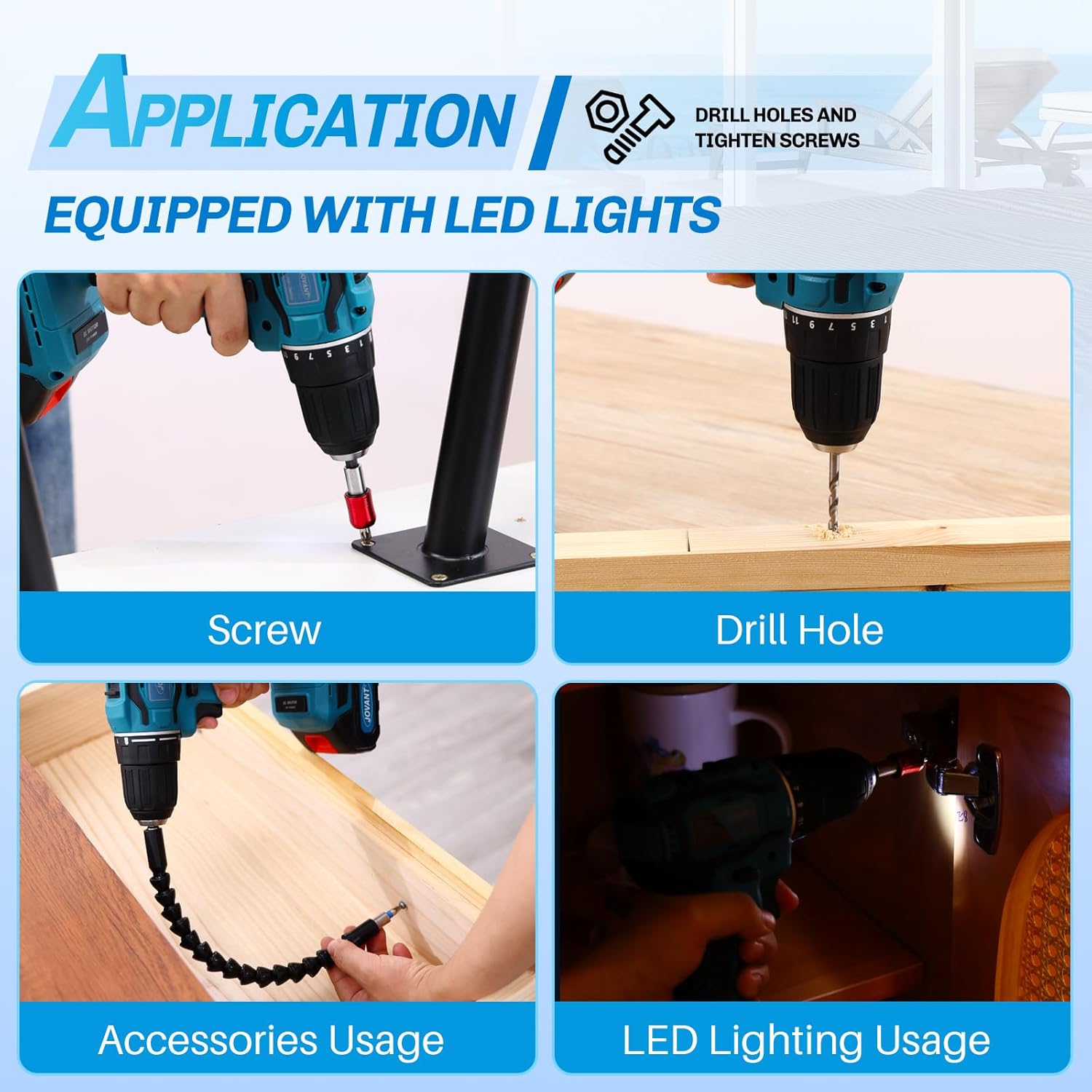 - 【Note】This cordless drilll kit does NOT INCLUDE any batteries, it is compatible for JOVANT 2.0ah/4.0ah/6.0ah batteries.