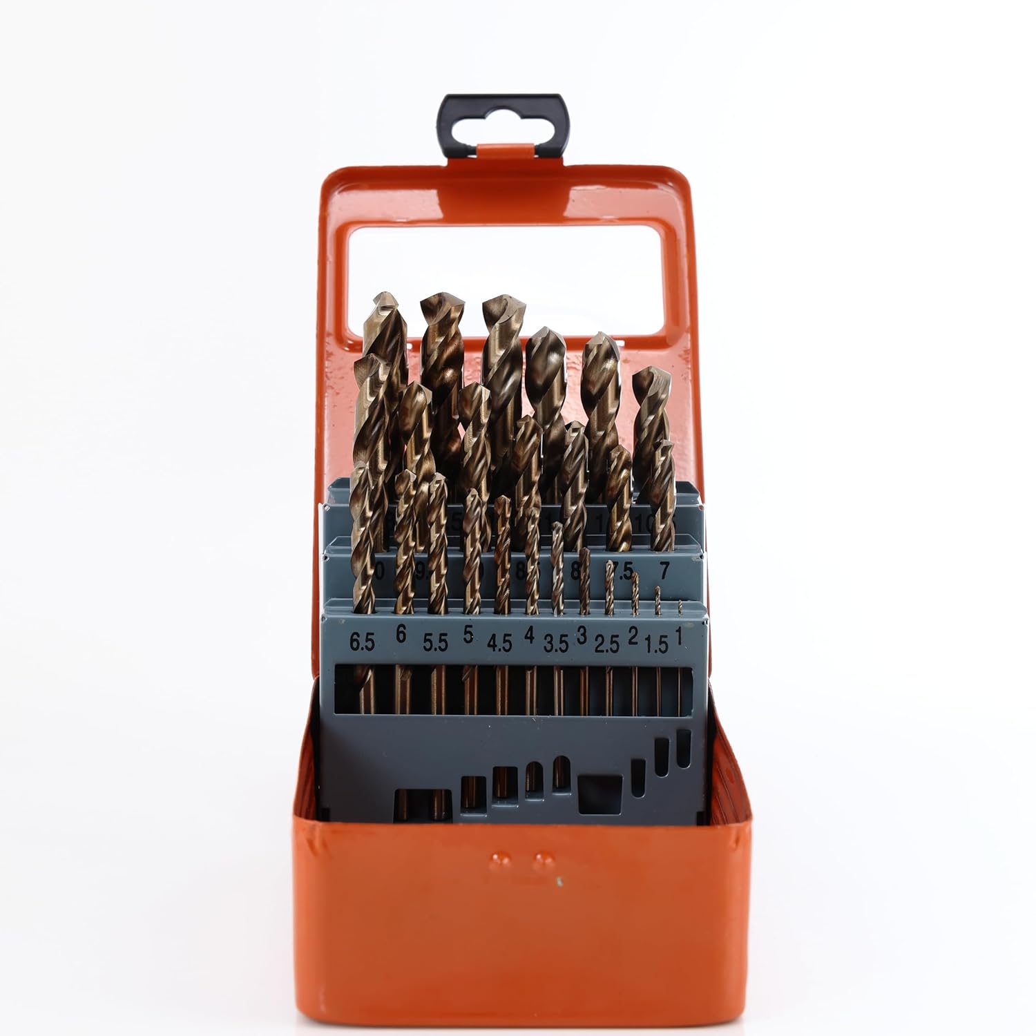 25 Stück 3/64-1/2 Zoll Kobaltbohrer, M35-HSS Hochgeschwindigkeitsstahl für Bohrschrauber, Edelstahl-Hochleistungs-Spiralbohrer
