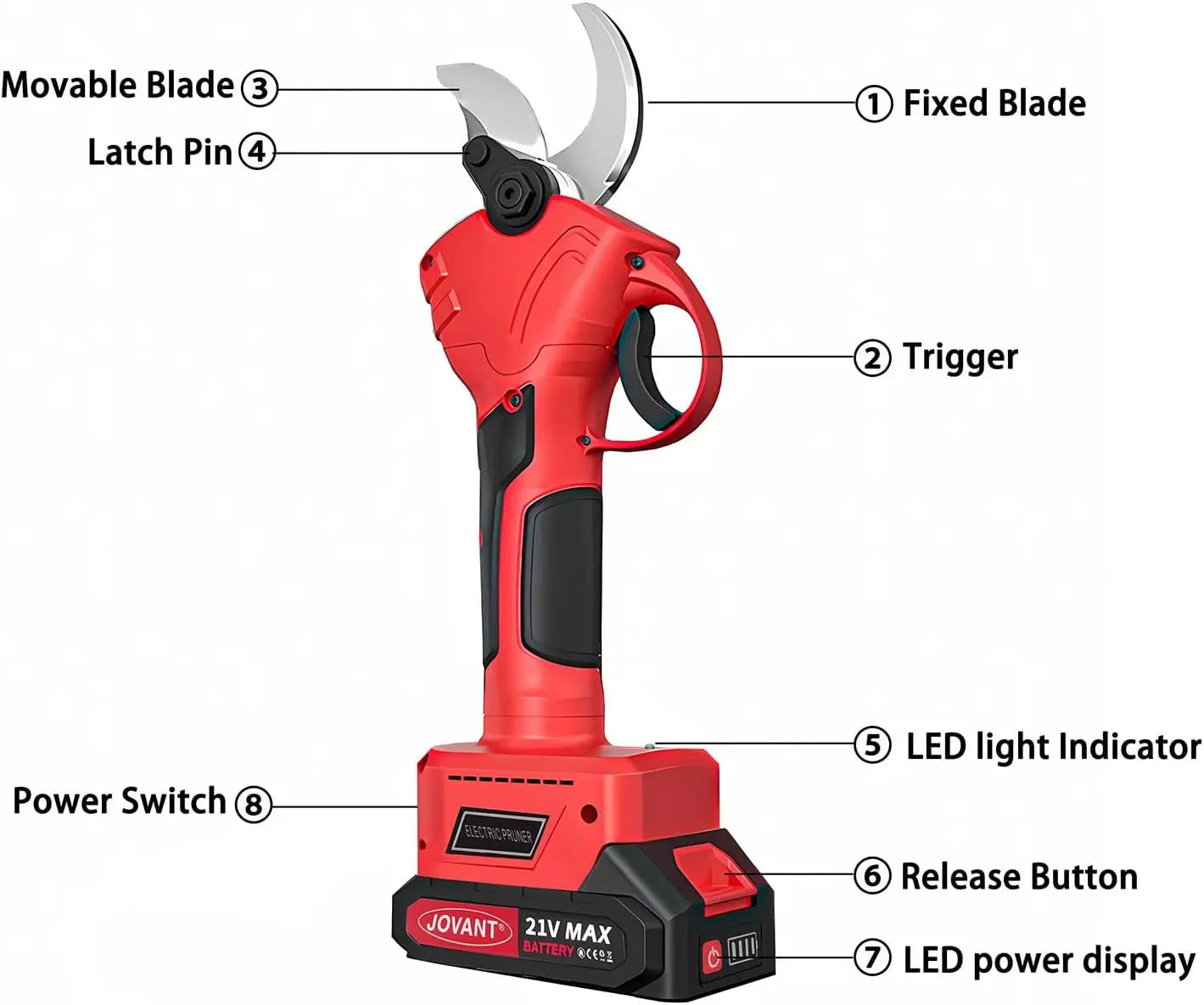 JOVANT 30 mm Akku-Gartenscheren-Set mit 2 A-Akku