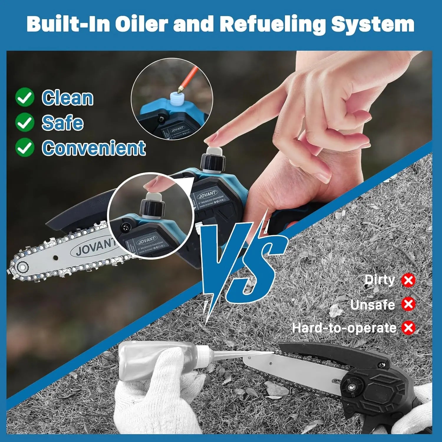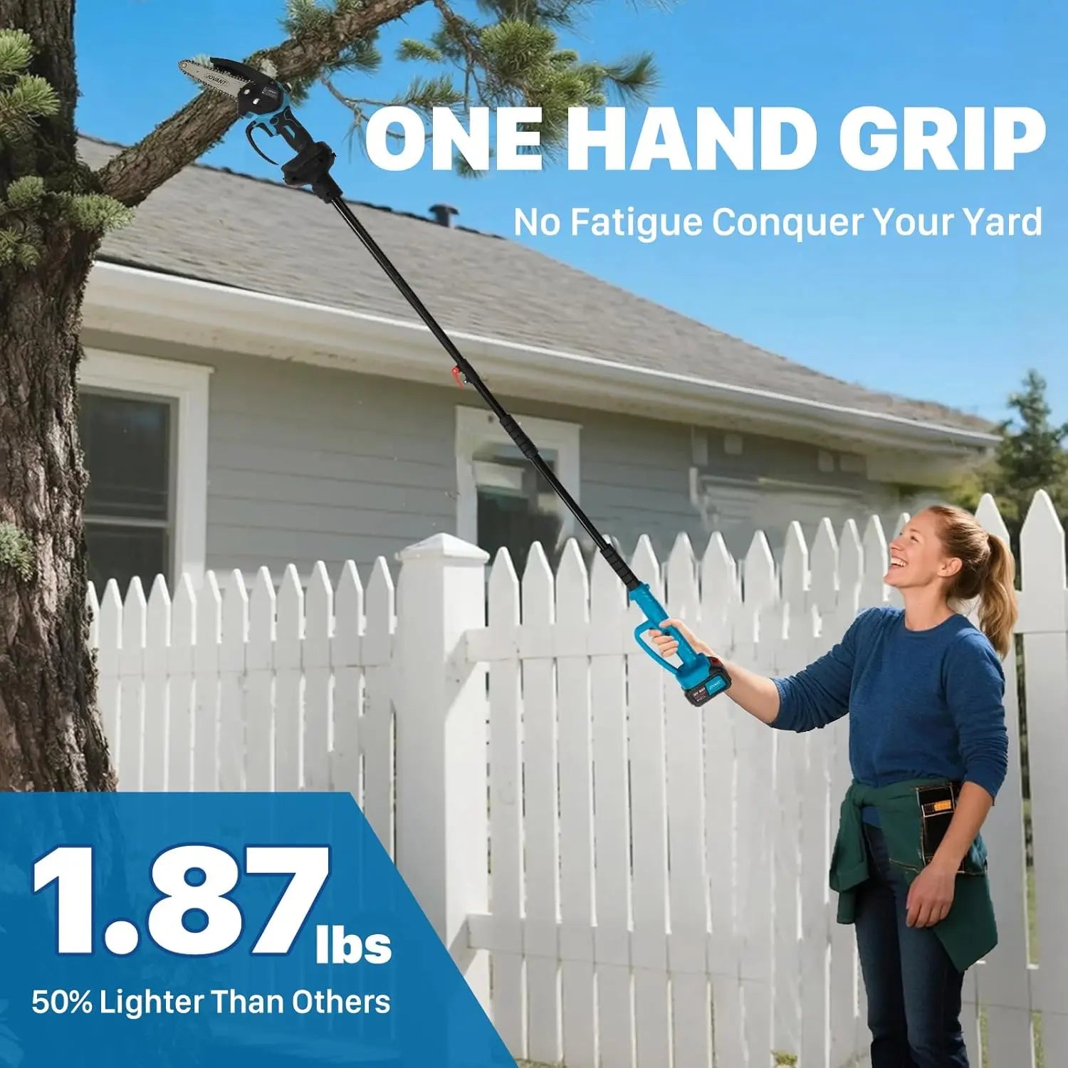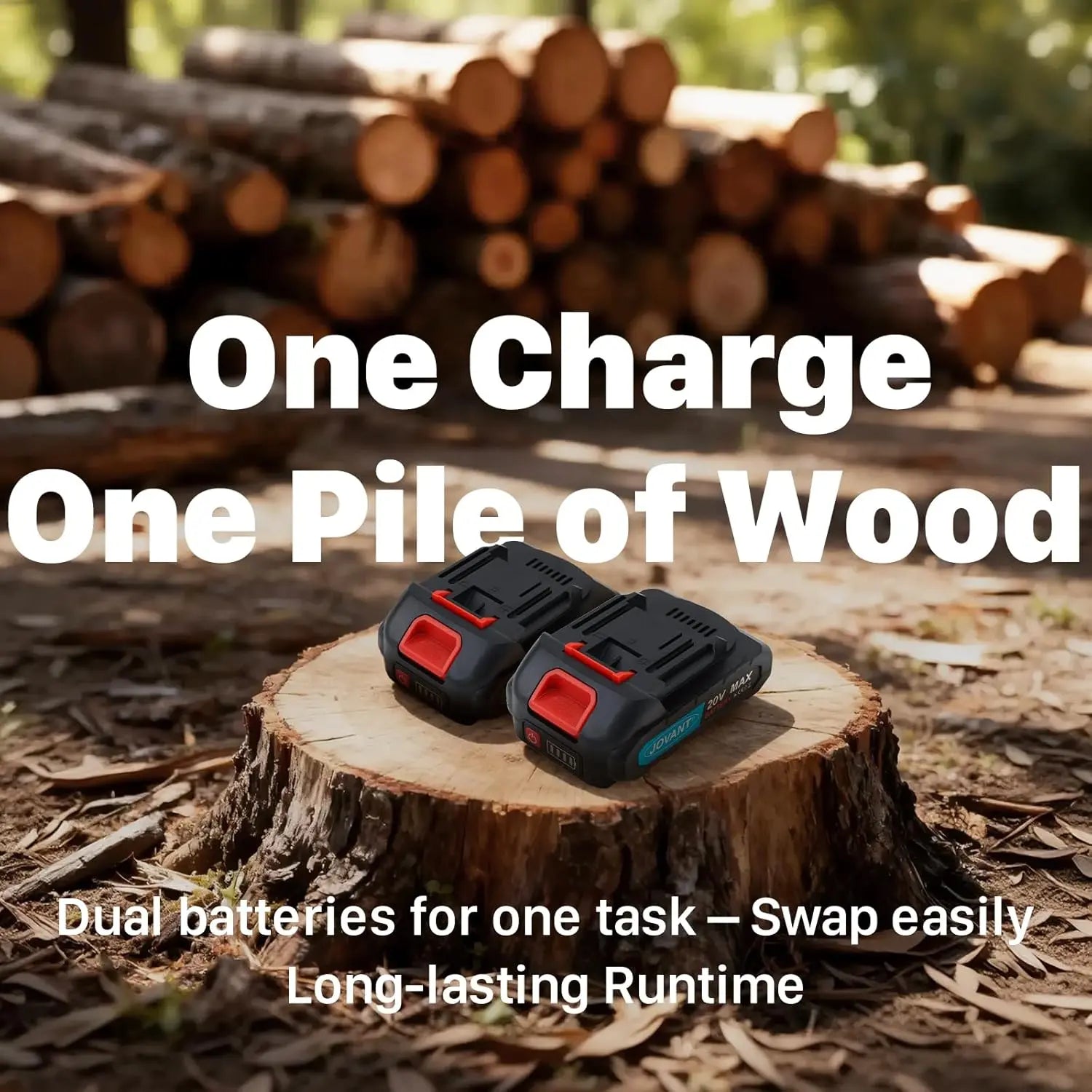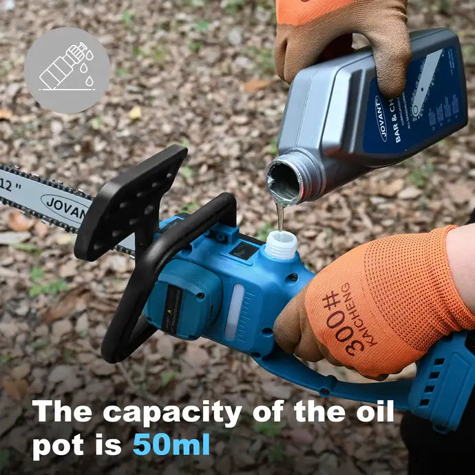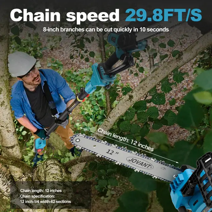 JOVANT Akku-Kettensäge 6 Zoll und Verlängerungsstange 2-in-1-Set mit 2 4A-Akkus
