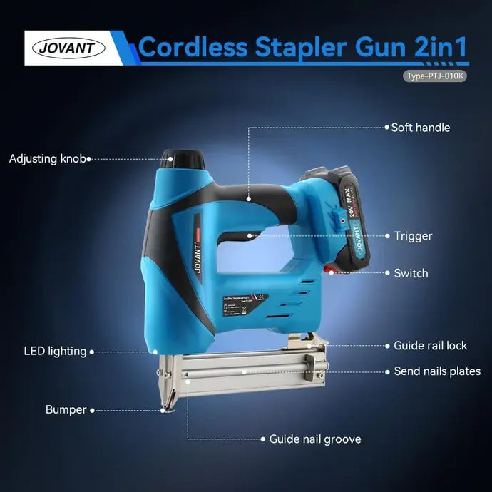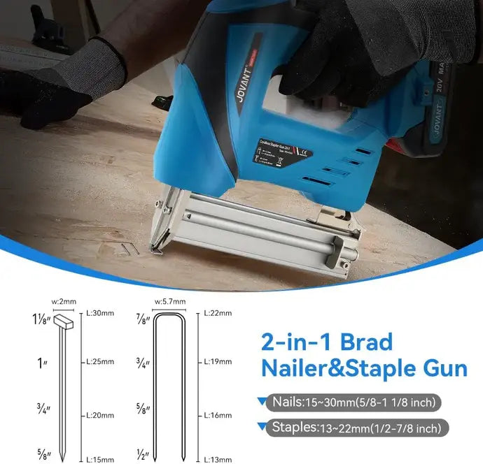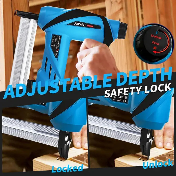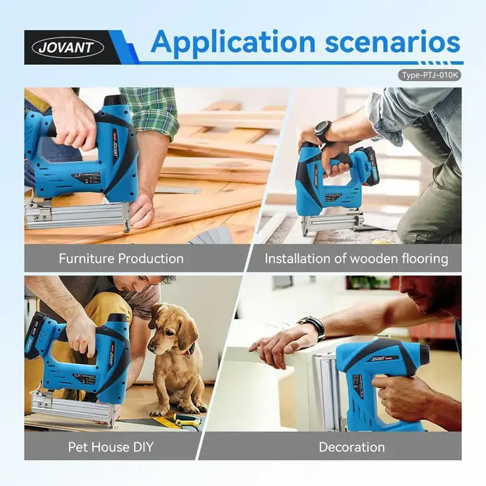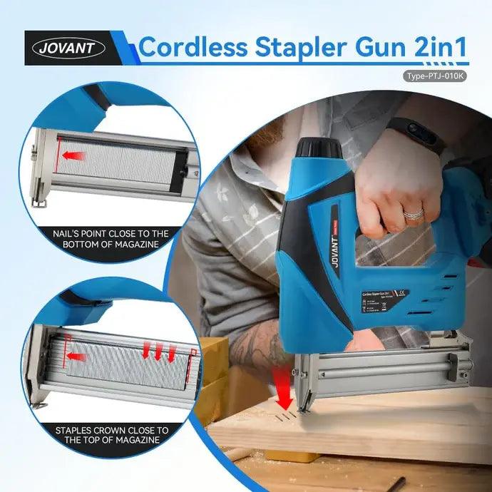 - Nagelspezifikationen: Das elektrische Nagelgerät ist mit 4 x 80 Nägeln und 4 x 88 Klammern ausgestattet. Bei voller Leistung können 1100 Nägel verschossen werden. Wir verwenden professionelle Technologie, um die Härte der Nägel zu verbessern und die Effizienz beim Nageln zu steigern. Nägel und Stiftnägel sind vollständig mit dem JOVANT Nagelgerät kompatibel und verstopfen nicht.