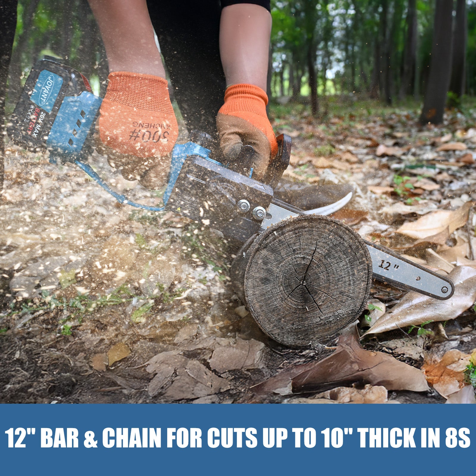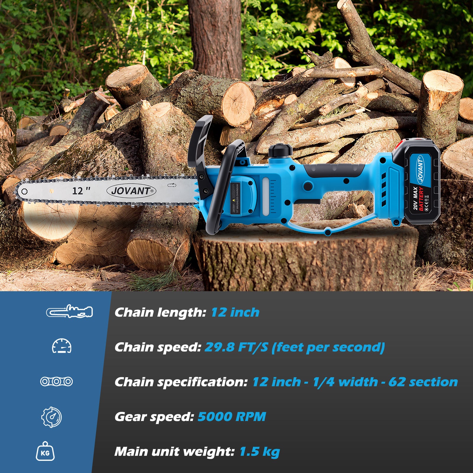 - Jovant 12-Zoll-Minikettensäge: Dank ihrer größeren Schnittbreite bewältigt die 12-Zoll-Akku-Minikettensäge mühelos auch größere Holzstücke. Erleben Sie mehr Leistung und Vielseitigkeit – die optimale Wahl für jede anspruchsvolle Aufgabe.