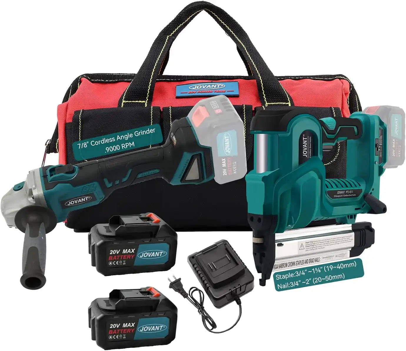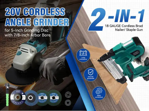 JOVANT Akku-Winkelschleifer 20V MAX (5 Zoll) und Akku-Nagelpistole 50 mm mit Akku, Akku-Werkzeug-Set mit Akku und Ladegerät