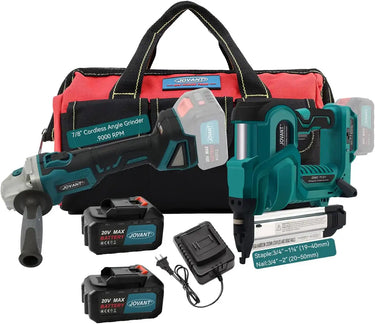 JOVANT Akku-Werkzeug-Kombinationsset, 2-in-1 7/8-Zoll-Winkelschleifer und 50-mm-Stiftnagler mit 2 x 4A Ultra-Kapazitätsakkus – Sie müssen sich keine Sorgen machen, dass Ihnen während der Arbeit der Strom ausgeht!