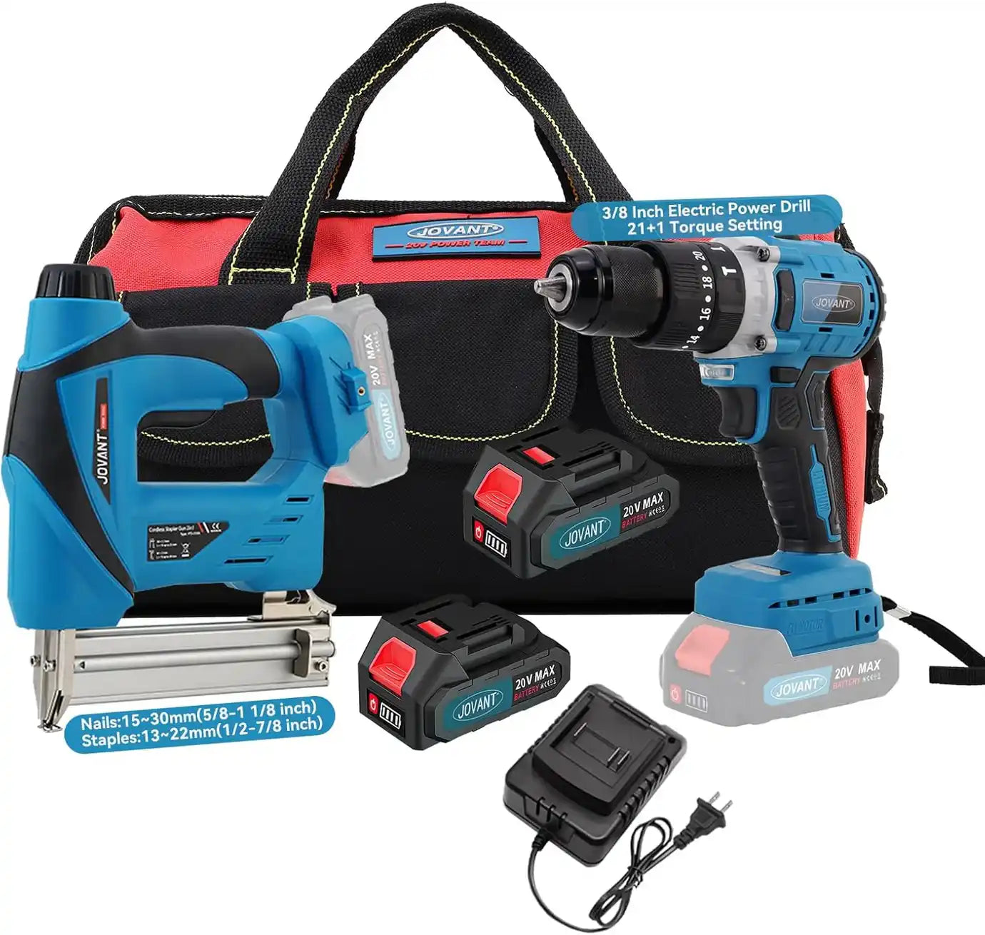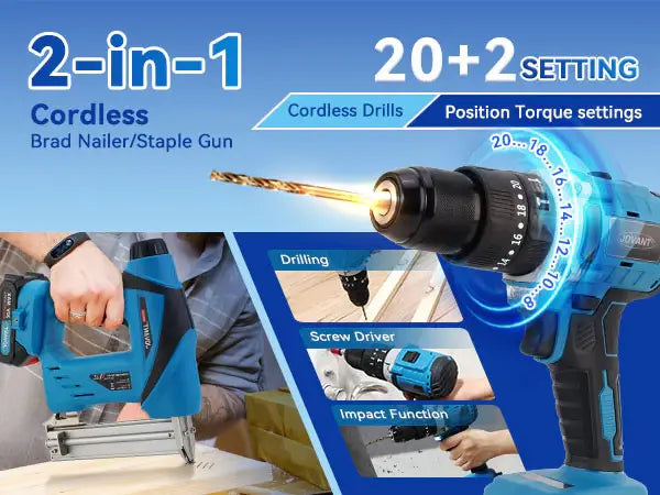 JOVANT Akku-Bohrmaschinen und Nagelpistole, batteriebetrieben, 1/2-Zoll-Bohrer
