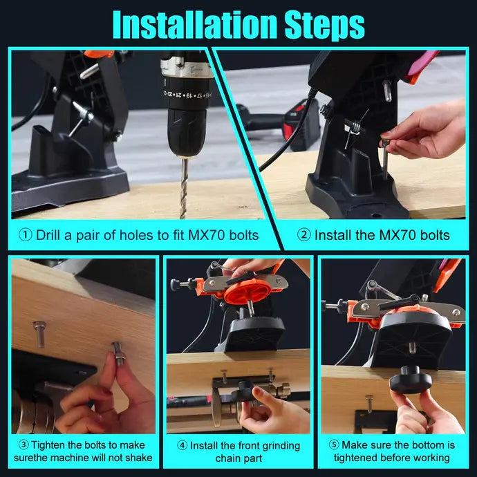 ▶ 【Pratique et amovible】 Conçu pour plus de commodité, cet affûteur compact et peu encombrant dispose de fentes de positionnement pour le montage de la machine, ce qui facilite son montage sécurisé sur un établi ou sur toute surface appropriée.