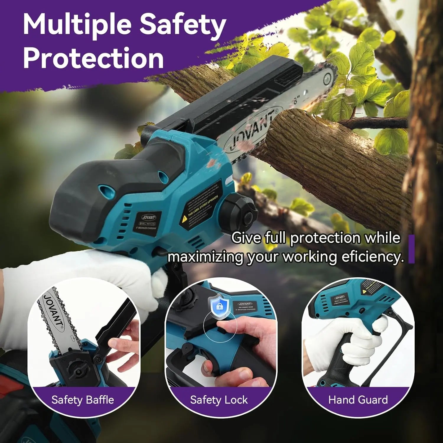 - Enhanced Safety Features - Our dual-button activation system (safety lock and power button) prevents accidental starts, while the rotating guard minimizes wood chip splatter. As a Tree branch saw, these safety chainsaw features especially important when performing precision pruning and branch cutting.