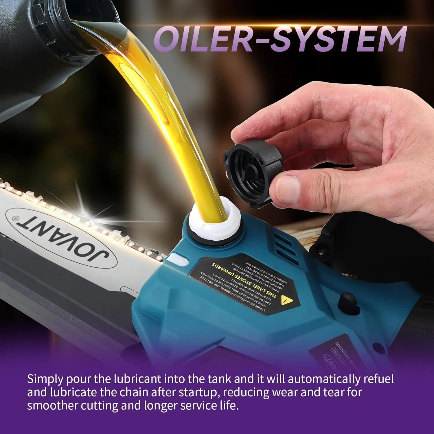 - Cordless Mini Chainsaw: Has a AUTOMATIC OILER & DURABLE CHAIN,and a transparent reservoir with an leak-proof design. Press the bulb to deliver oil to the blade and chain, reducing friction and extending chain life. The High Carbon steel chain, made from high-quality guide chain and treated with a deep quenching process, offers exceptional robustness, strength, and abrasion resistance for smoother cutting and reliable performance.
