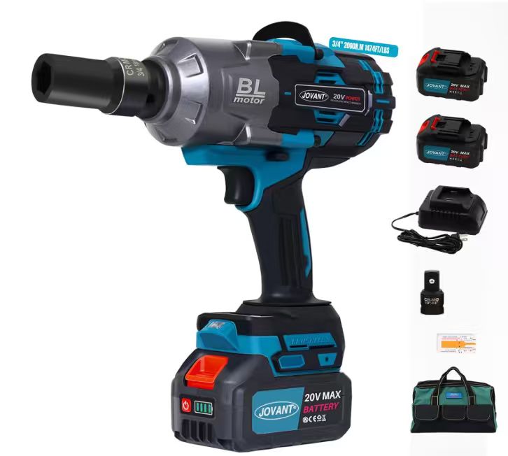 - High Torque Impact Wrench Is Suitable For Difficult Work: The JOVANT impact wrenches stands out with its lightning fast peak separation torque of 1474Ft-lbs(2000N.m). Possessing Explosive Power. The main components are forged using advanced technology, and the brushless motor provides strong power output.