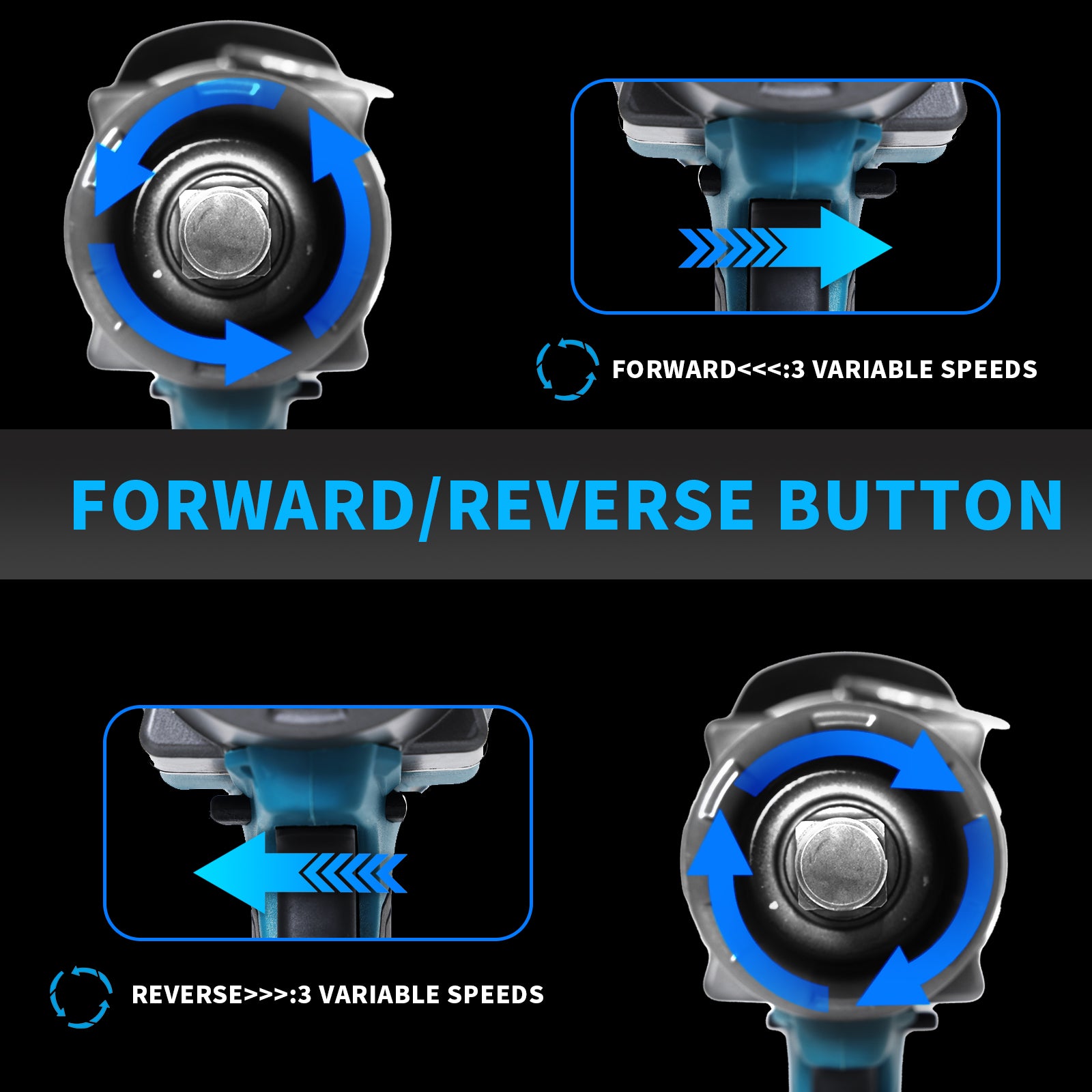 - Six live Speed Adjustable: Featuring forward 3 speed and reverse 3 speed settings, the power impact wrenches allows for precise control and versatility in various applications. This high torque impact wrench provides the perfect balance between power and precision.You can exercise precise control based on the task at hand.