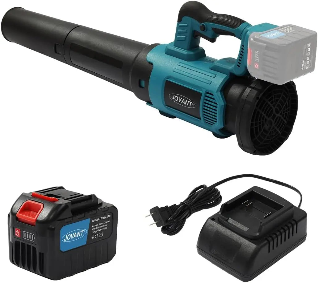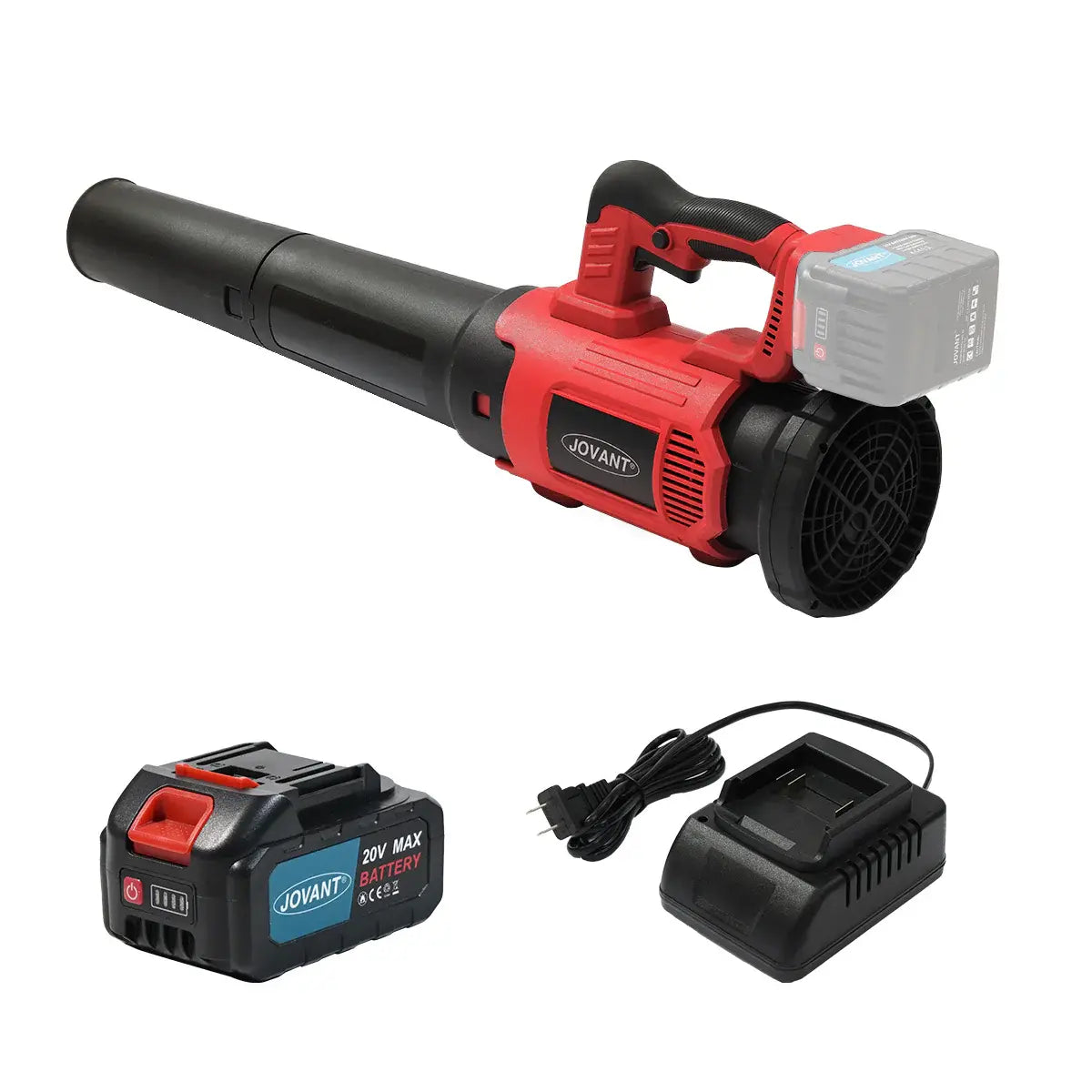 JOVANT Compact Cordless Leaf Blower - Includes 1 Batteries and Charger. Infinitely adjustable speed with up to 450 CFM airflow. Lightweight design ideal for indoor cleaning and porch maintenance.