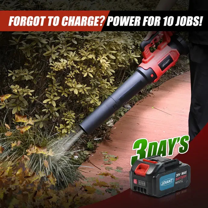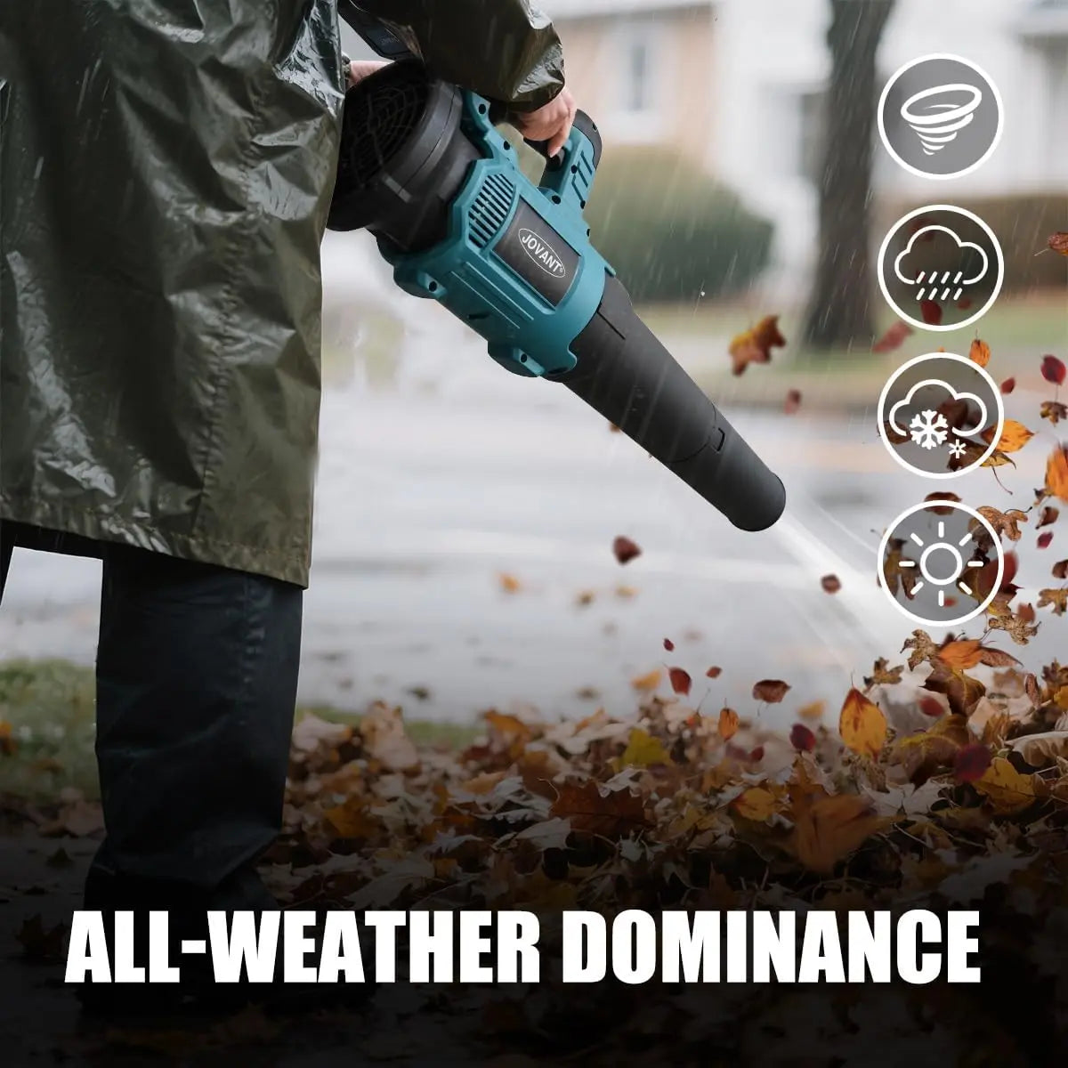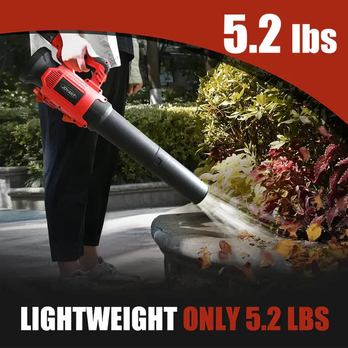 【Long-Lasting Battery Life】JOVANT Electric Leaf Blower comes with one high-capacity 4AH lithium batteries. Designed to handle extended yard cleanup sessions without interruption, it offers worry-free endurance with a single-battery solution—simply recharge and continue. Experience seamless performance with no power depletion concerns!