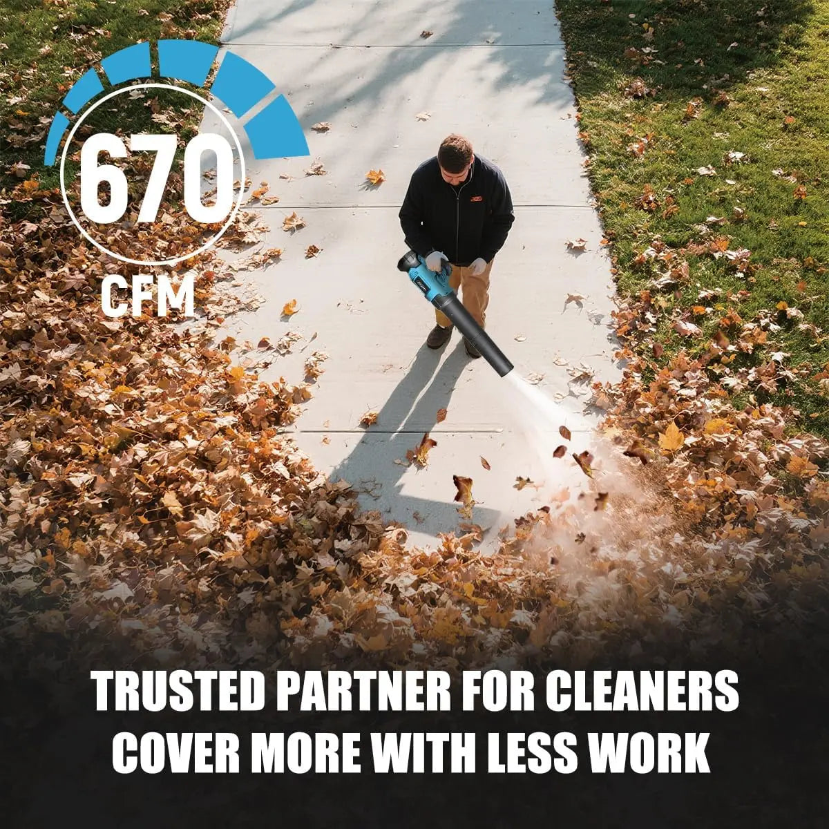 Up to 670 CFM and 180 MPH, the leaf blower can efficiently help you clean the target area