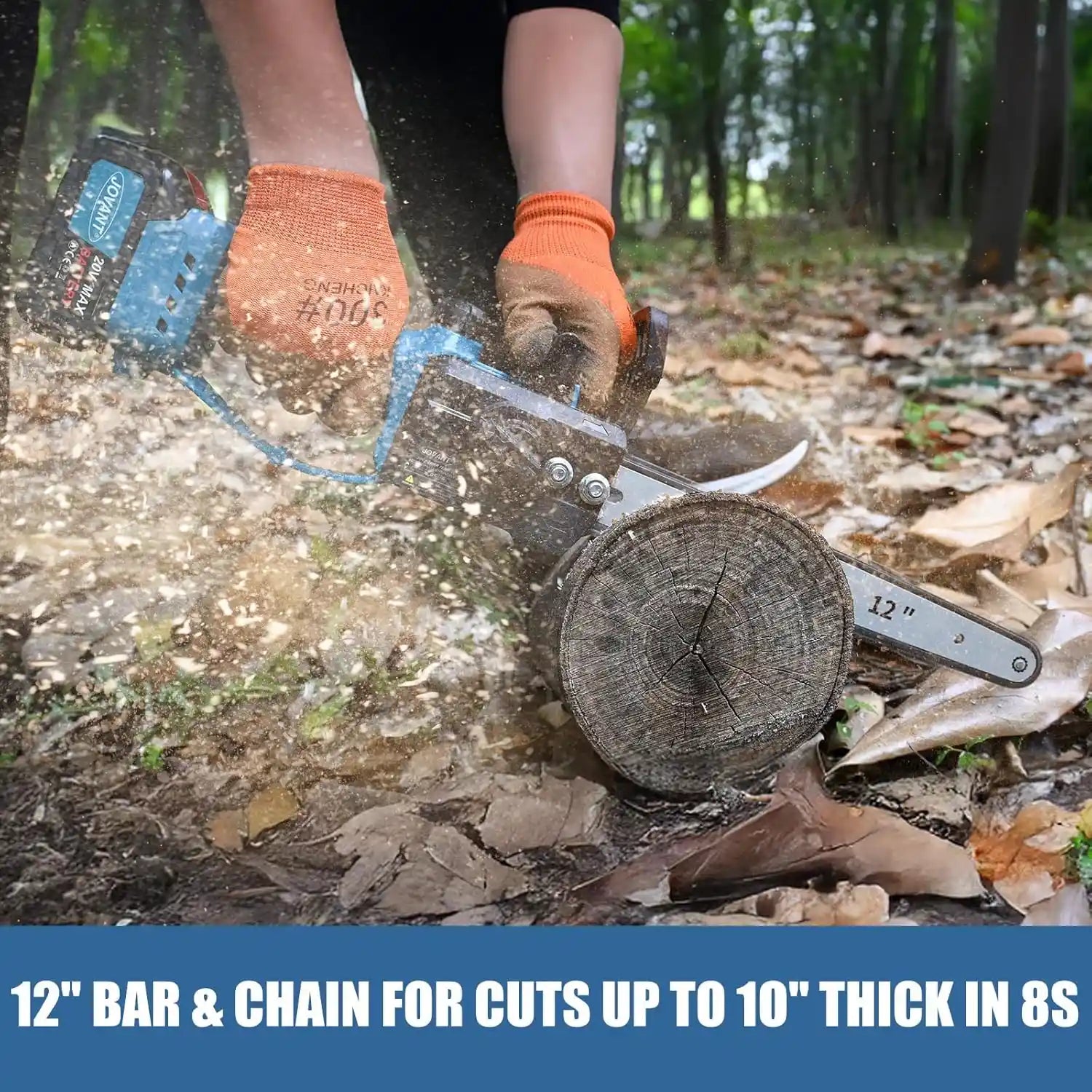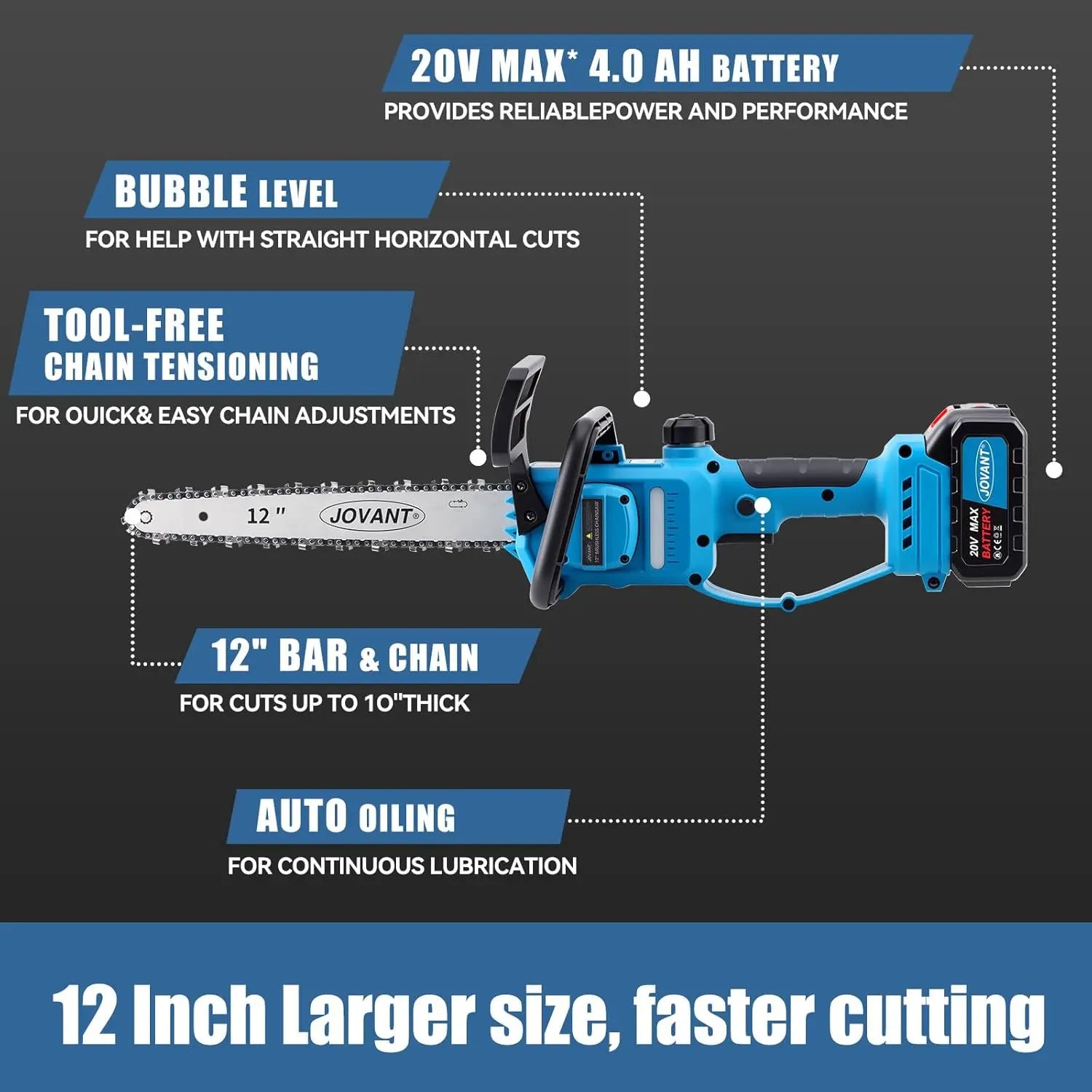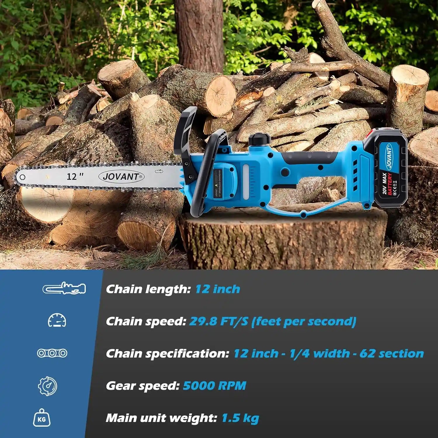 - Jovant 12 inch mini chainsaw: With a larger cutting size, the 12-inch cordless Mini Chain Saw effortlessly handles bigger wood. Experience greater power and versatility, making it the superior choice for any demanding task.