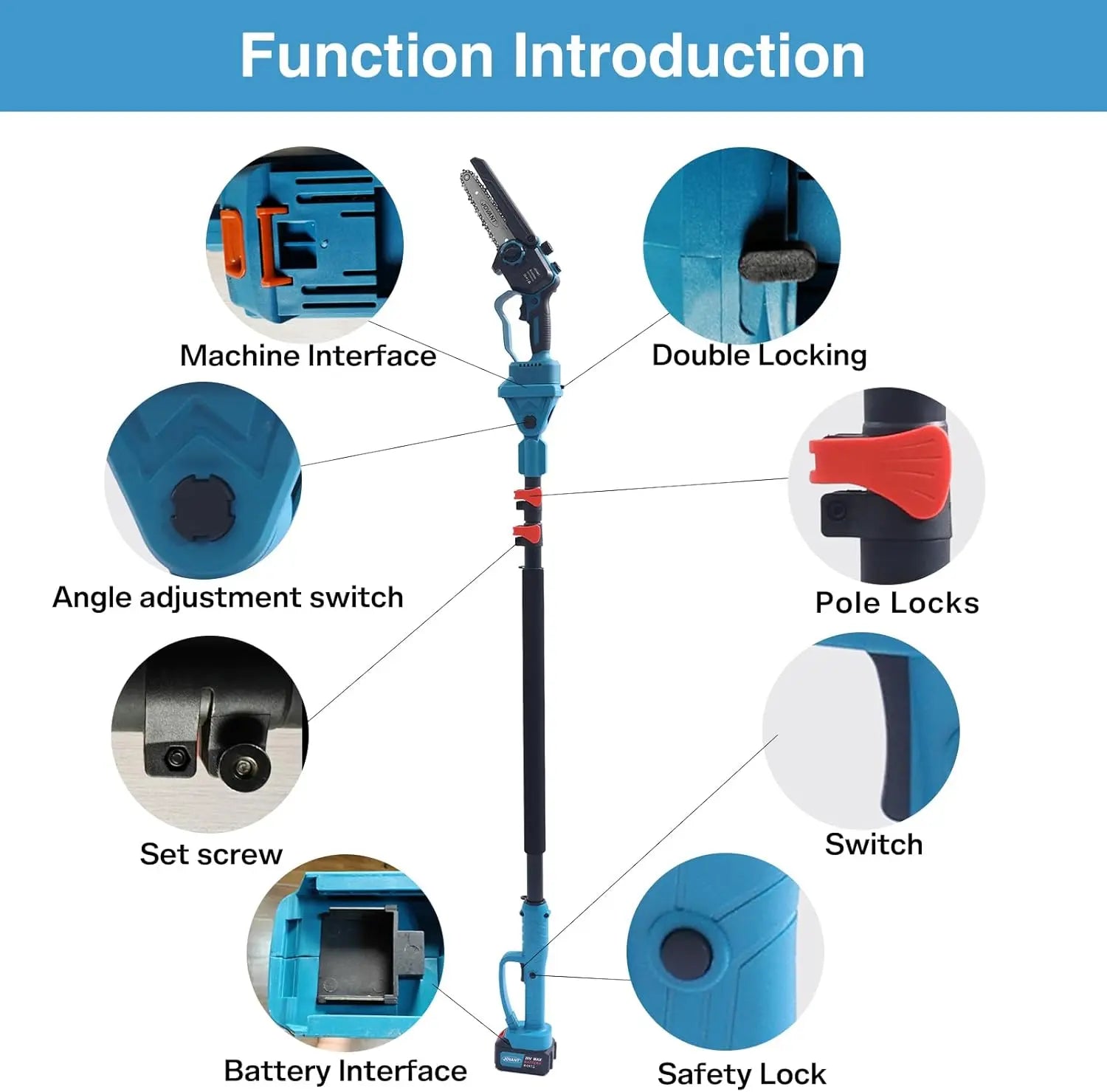 - 2-IN-1 Design: 2-IN-1 pole chainsaw include a electric chainsaw and a telescopic pole to provide a versatile tool for gardening. This Electric pole saws is used for pruning trees. This electric chainsaw can be used for low-position work, while electric pole saw can be used in hard-to-reach high-position areas. Note that the product weighs 6.6 pounds with the pole attached, making it more suitable for individuals with greater physical strength.