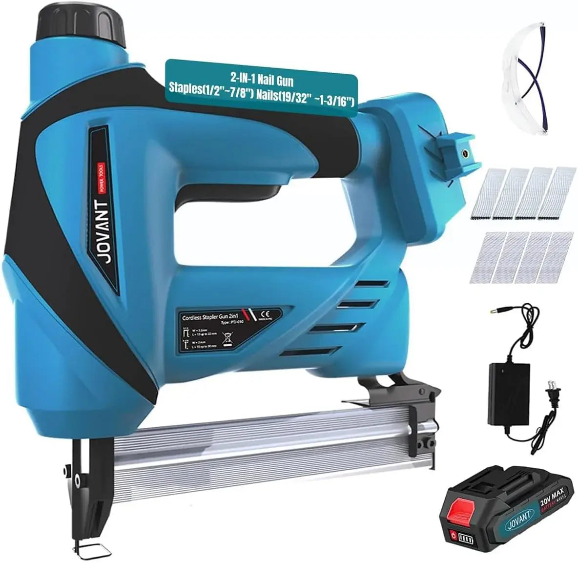 Cordless Nail Gun with 2.0Ah Li-ion Battery, 20V 2 in 1 Electric Nail Gun with 400 pcs Staple and 400 pcs Nails, Battery Powered for Upholstery, Small Projects and Woodworking