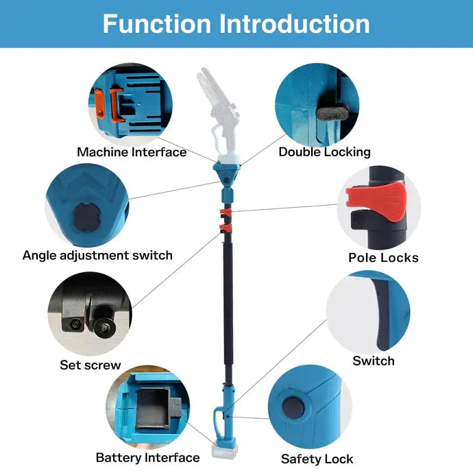 ▶【Package List】Electric tree trimmer x1, 6inch Small Chainsaw x 1,Telescopic Extension Pole x1,Battery Pack x2,,Chain ×1 (has been mounted on the chainsaw), Chain Bar ×1(has been mounted on the chainsaw), Quick Charger ×1, Guide Plate Cover×1,Storage bag x1,Chain Protection Cover×1,Chain Filing×1.