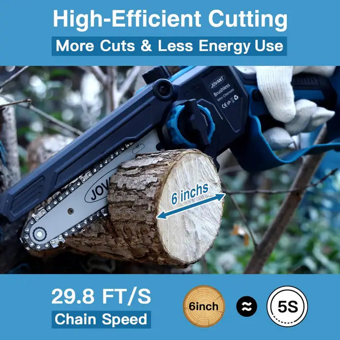 ▶【6 inch Mini Chainsaw】Electric chainsaw is equipped with 880w high-powered brushless motors,29.8 ft/sec ultra-high chain speed takes only about 5 seconds to cut a 6" diameter log. It is equipped with upgraded external refueling device, Just pour the lubricant into the oil tank and then you can freely lubricate the chain.
