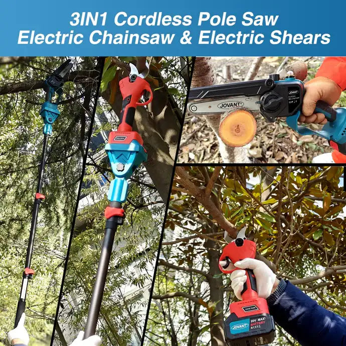 JOVANT 30MM Cordless Pruning Shear & Chainsaw & Extension Pole 3-in-1 Kit with 2pcs Batteries