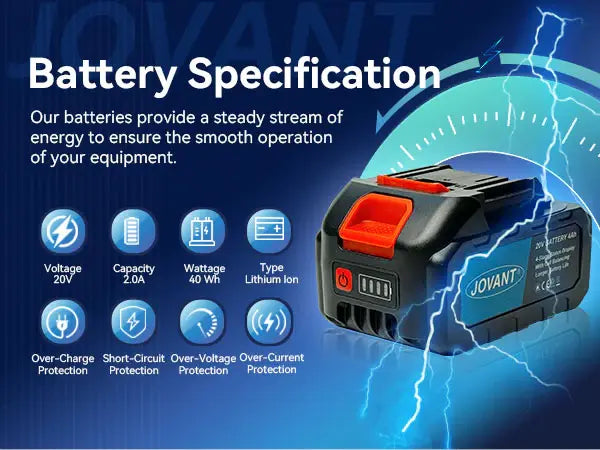 JOVANT 20V 4.0Ah Lithium Ion Battery , Replacement Battery with Cell Balancing Function Compatible with JOVANT Chainsaws, Drills, Nail Guns and Pruning Shears