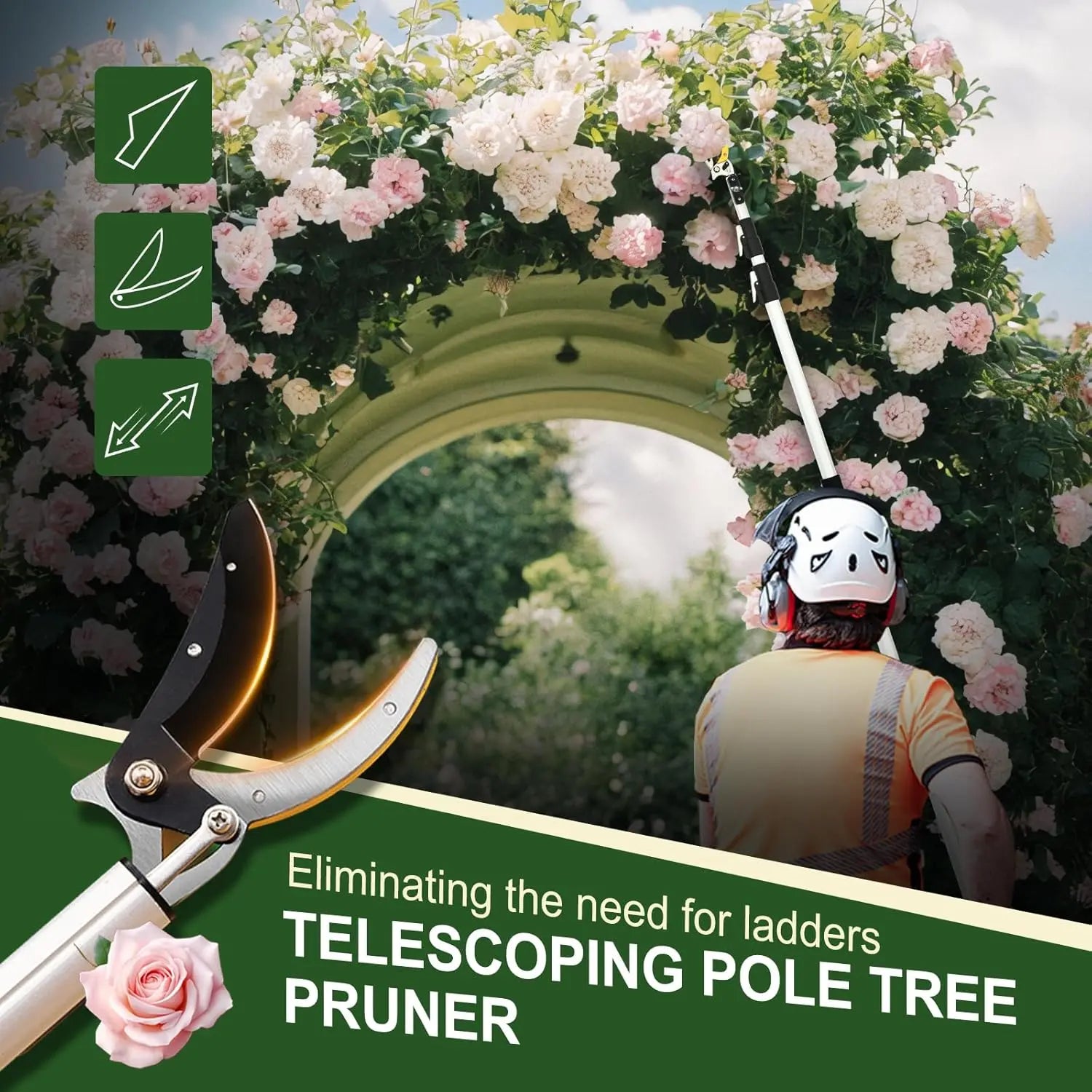- Professional Tools:The telescopic pole tree pruner is designed for cutting tall trees and shrubs from the ground. The shears have a long reach and can be extended to cut branches that are out of reach. The blades are made of steel and are sharp enough to cut and hold in one operation