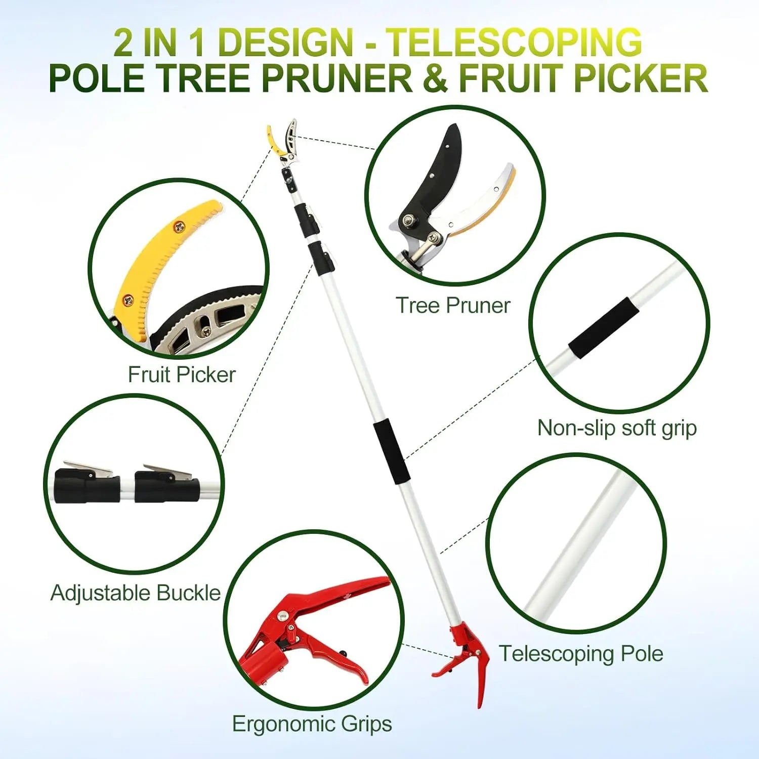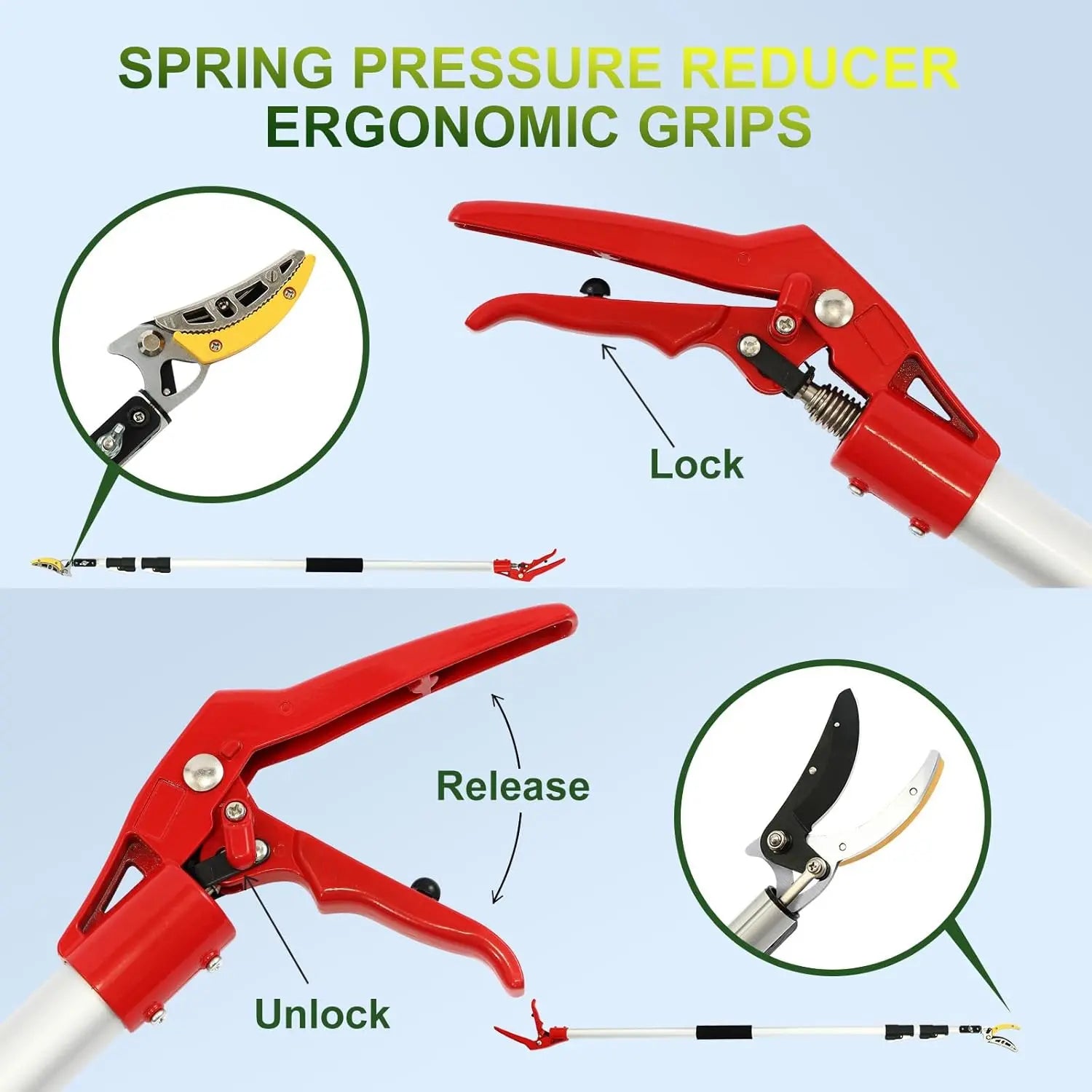- Multifunctional:Fruit picking and tree pruning can be done very well,telescopic fruit picking shears are not only suitable for pruning garden trees, but also for picking fruits. Its sharp blades and Spring pressure reducer design make it easy to cut through smaller branches