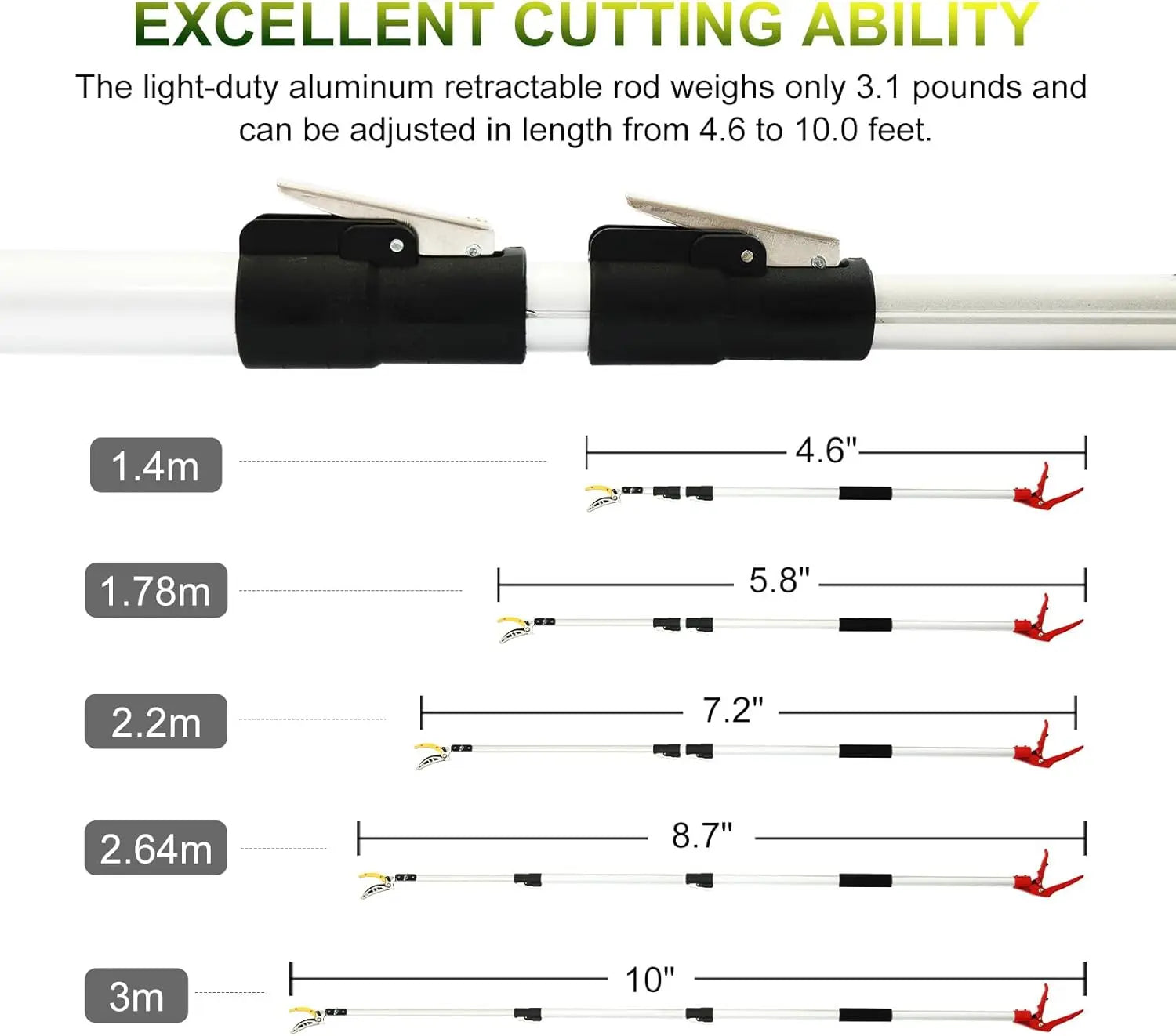 - Adjustable Length:The length is adjustable and can be used for a variety of purposes, and it is easy to adjust the length to suit your needs. The maximum adjustable length is 3 metres, so you can prune high branches and pick fruit without using a ladder