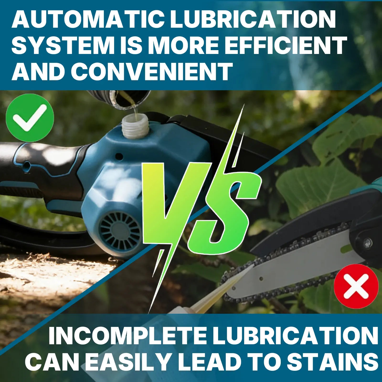 - Strong & Smooth Cutting System: This electric saw features a strong cutting system with a superior guide chain that has undergone a deep quenching process for exceptional durability and sharpness. Whether you're using it as a branch cutter or pruner, expect a quick, clean, and remarkably smooth cut every time, experience flawless cutting power