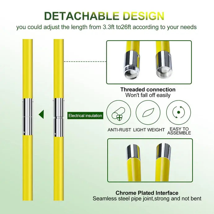 ➤【EXCELLENT QUALITY】:The pole is made of fiberglass, the material is safe and corrosion-resistant and can be used for a long time. With our saw can well reach the desired length so that you can use it at different heights.